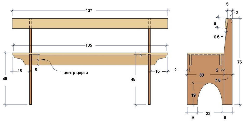 Чертеж скамейки из дерева с размерами