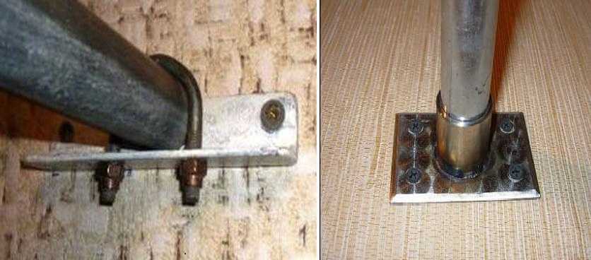 Если нет желания долбить стену, можно поступить проще, и прикрепить трубу с помощью уголков или других соединительных металлических деталей.