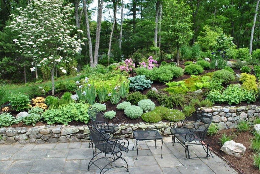 - горный склон – комбинируются камни разных размеров и форм, а также горные растения, чтобы создать оформление в формате склона;
