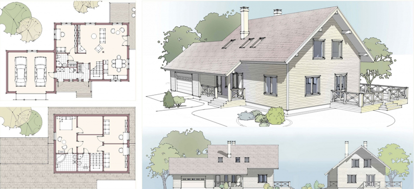 После этого вам будет представлен набор чертежей, схем и цветных иллюстраций, позволяющий полностью оценить внешний и внутренний вид будущего дома. Да, кого-то может удивить, зачем нужно составлять проект практически с нуля, если вы уже знаете, как будет выглядеть ваш дом.
