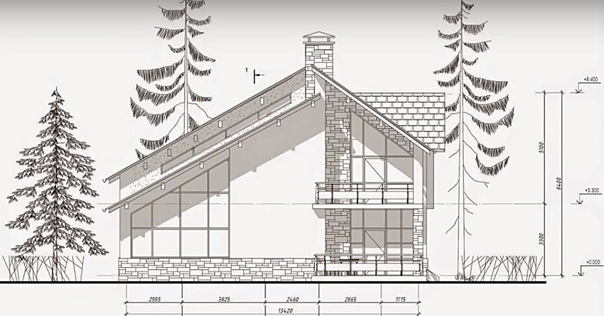 Уже на этапе составления эскиза нужно четко определиться с количеством этажей, типом кровли, внешним видом фасада и фронтальных частей дома, вплоть до количества окон, балконов, наличия террасы или мансарды. Эскизный проект также предполагает наброски вида здания в продольном и поперечном разрезах, где указываются особенности конструкции и материалы, из которых предполагается возводить дом.