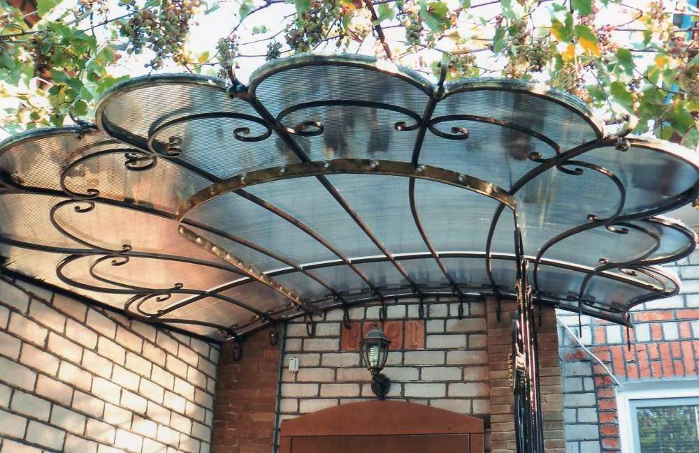 Преимущества навесов и виды с металлическим каркасом над дверью или крыльцом