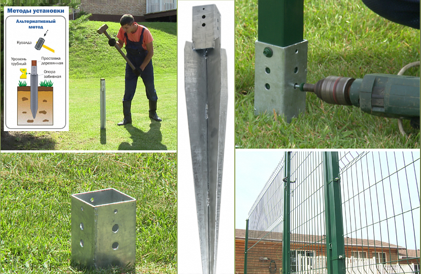 Опоры следует вбить в почву, и обычно для этого применяют тяжелую кувалду или специализированную технику. Способ будет иметь такие достоинства:
