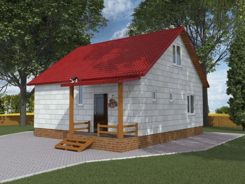 Проект бани 6 на 6 из пеноблоков с верандойИсточник besedki-group.ru