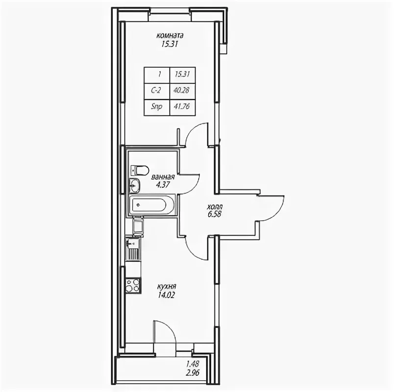 Однушка-распашонка встречается реже, чем двушки и трешки. В этом случае низом «распашонки» служит коридор. Напротив входной двери, в конце коридора, стоит санузел. Рядом с ним расположены выходы в спальную комнату и на кухню. Лоджия или балкон могут быть расположены как в спальне, так и на кухне.