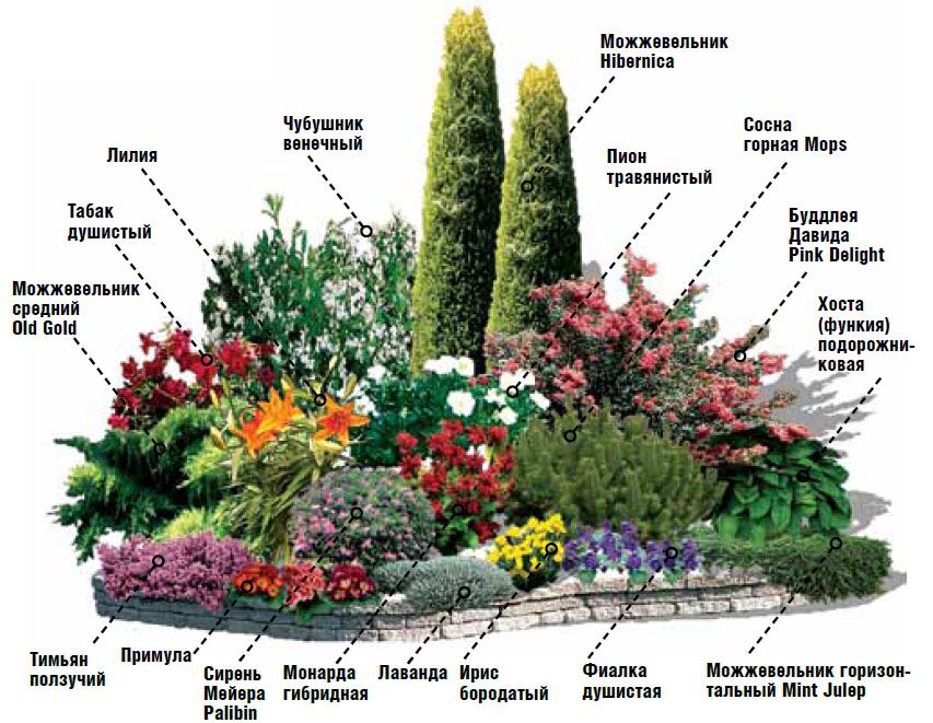 Ближе к центру участка советуем располагать низкорослые экземпляры.