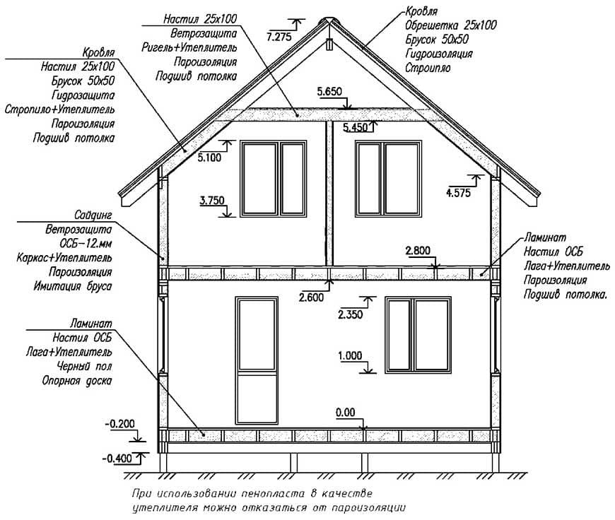 , включая стропильные конструкции, коробку дома, фундамент и кровлю. Все эти элементы должны быть изображены на чертежах схематично с приложением расчетов и подробной разметки.