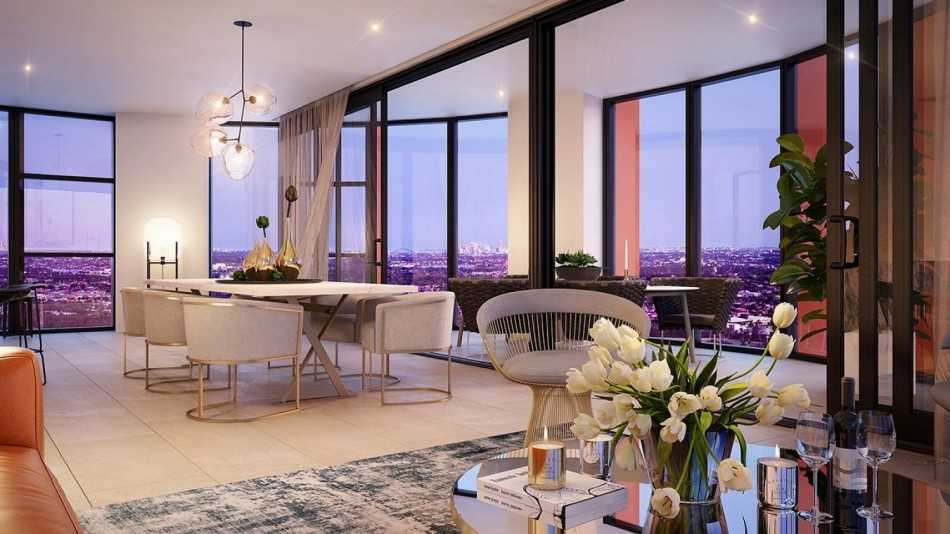 - Гостиная и столовая включают точечные светильники с рассеянным светом.