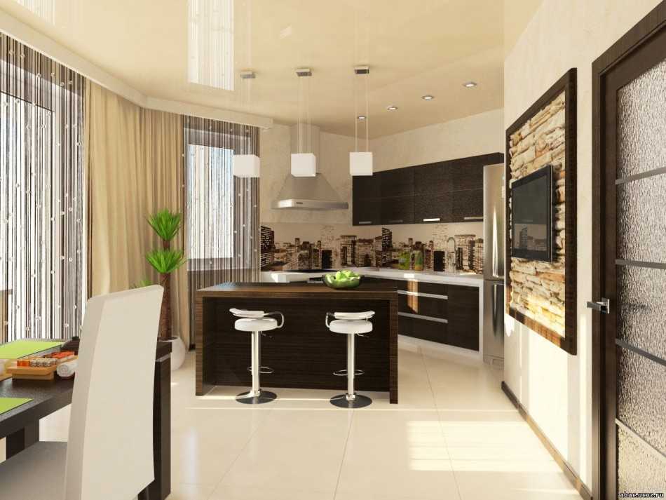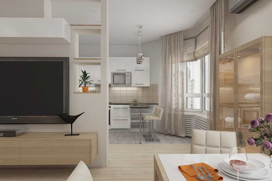 Проход из одной комнаты в другую разрешено делать не более 110 сантиметров. Но даже благодаря такому узкому промежутку конструктивный дизайн всего помещения сразу меняется. Теперь попадать в соседнее помещение гораздо удобнее и быстрее, а пространство кажется зрительно больше, наполняя обе комнаты светом. Вариант переделки, где кухня объединяется с комнатой общего назначения, не приемлем, если кухонная зона оборудована плитой, работающей на газу.