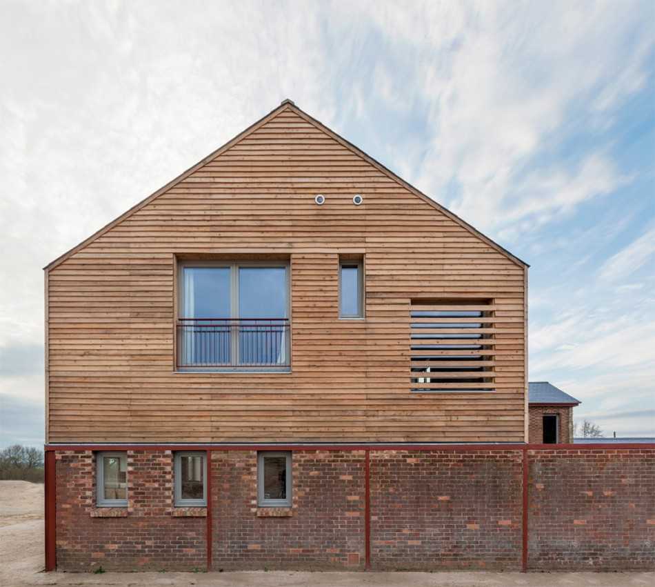 Планировка следующего дома довольно необычная — здесь не было цели уместить в доме как можно больше комнат, наоборот была цель получить просторное и комфортное жилье. Из прихожей на нижнем ярусе можно попасть в три комнаты: гостиную, кухню-столовую и уборную.