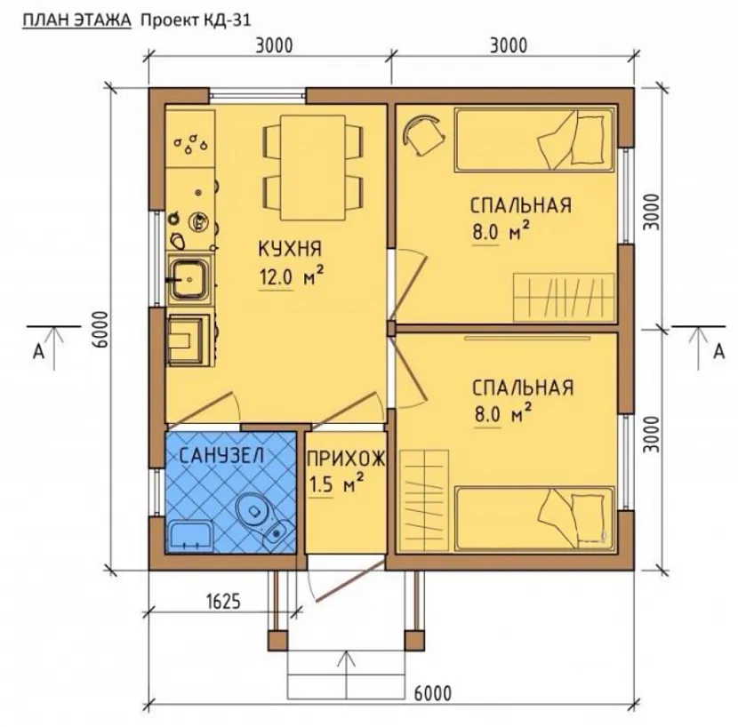 Проект одноэтажного дома 6 на 6Источник profstroy32.ru