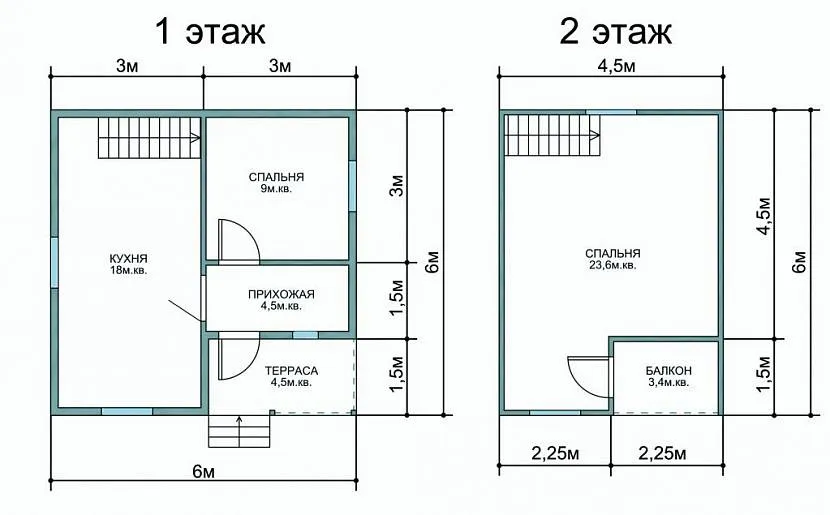 Необходимо отметить, что в двухэтажном строении часть внутренней площади будет отведена под межэтажную лестницу и лестничные площадки. То есть территория нижнего этажа маленького дома получается значительно меньше. Поэтому если в увеличении жилплощади за счет второго уровня острой необходимости нет, лучше строить простой одноэтажный домик.