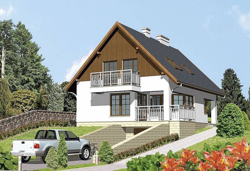 Проект с цокольным этажом и мансардойИсточник podvaldoma.ru