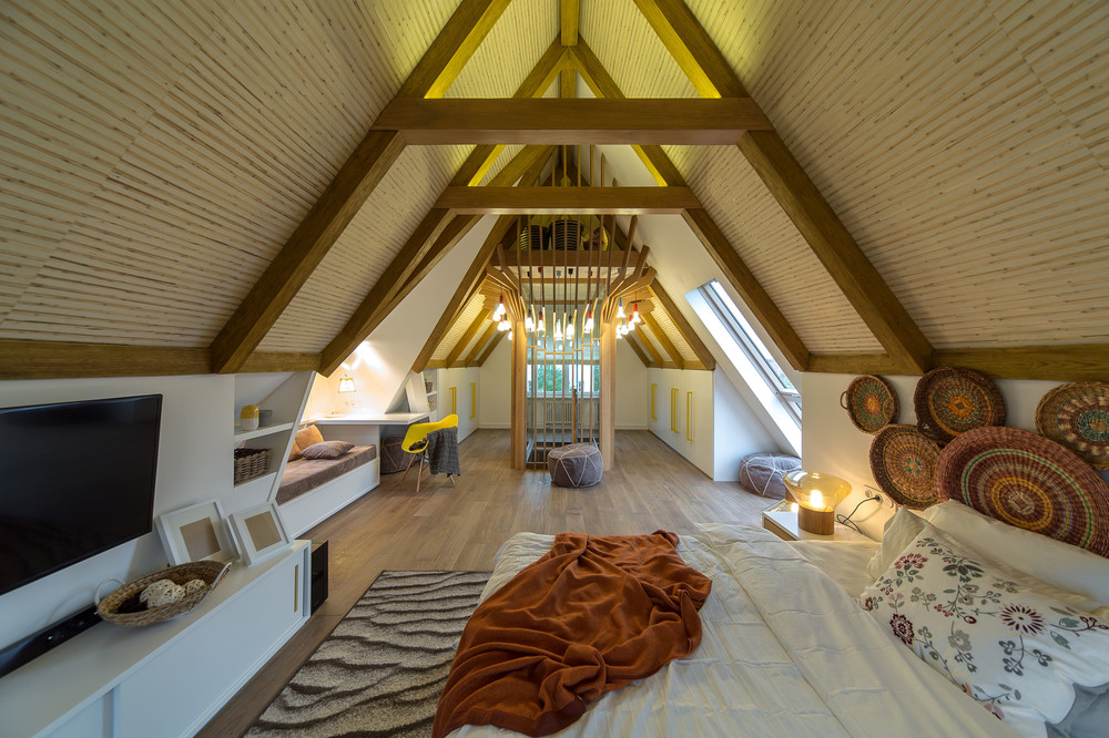 Также можно построить дом с мансардой или полноценным вторым этажом. Первый случай подразумевает изменение уклона кровли, что приводит к снижению высоты потолков и, следовательно, к возможности сэкономить на строительстве и отделке стен.