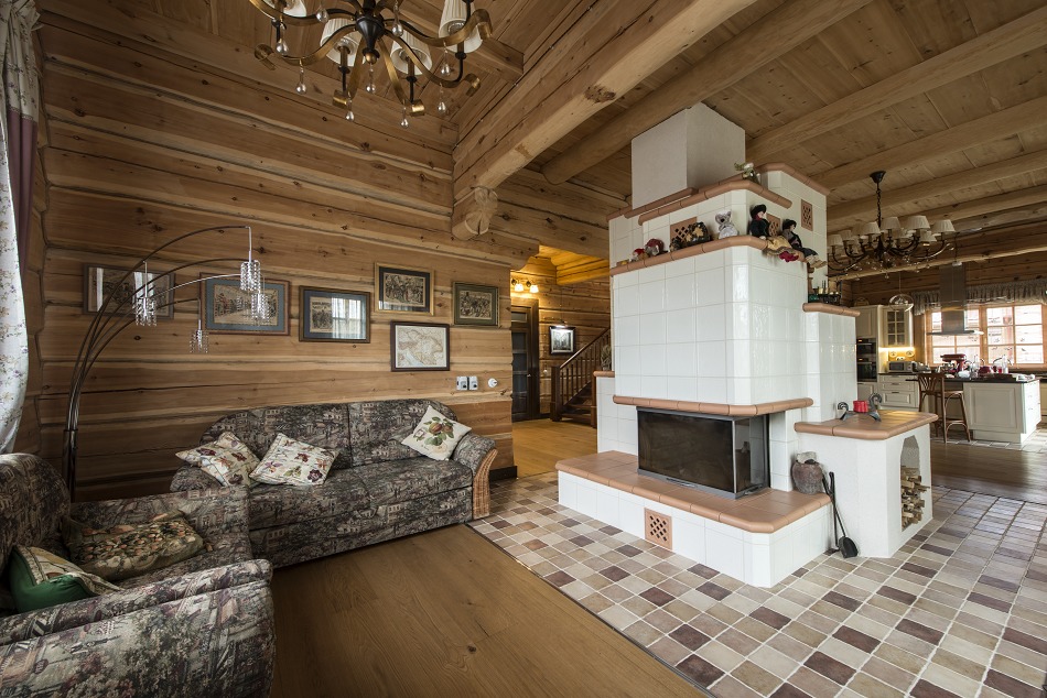 Для отопления такого дома достаточно установить печь или камин, с подключенными к нему радиаторами, также подойдет котел с небольшой мощностью. Здесь можно будет обойтись даже без насоса, так как напора воды будет вполне хватать, чтобы обогреть такое небольшое помещение.