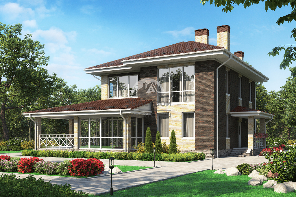 Проект дома 10 на 12 (10) с террасой и другими служебными помещениями: балконом, лоджией, верандой, гаражом – самый распространенный и удобный. Такой дом позволяет использовать внутреннее пространство дома для жилья, а многие служебные функции вынести на территорию дополнительных сооружений.