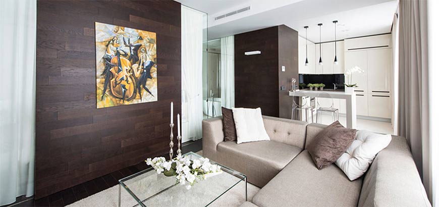 - Простота отделки. Больше не придется продумывать дизайн каждой комнаты: в данном случае оправдана одна концепция на всю квартиру.