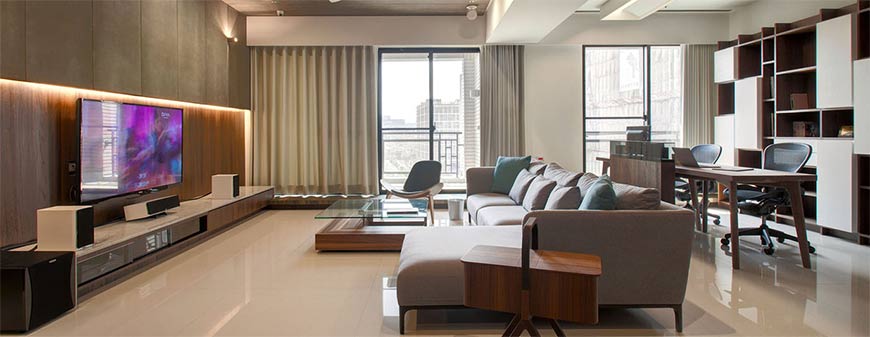 Личный кабинет-гостиная комната. Если гостиная не будет соединена со столовой, её можно дополнить рабочим кабинетом. Между данных зон идеально впишется разделительная ширмочка.
