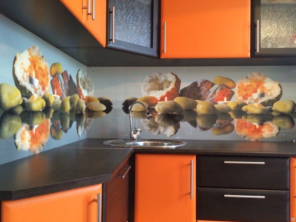Зрительно увеличить высоту или ширину кухни помогают направления узоров или линий на стенах. Например, если ты уложишь яркий фрагмент настенного материала вертикально – это создаст ощущение высоты пространства, а горизонтальные линии подчеркнут ширину.