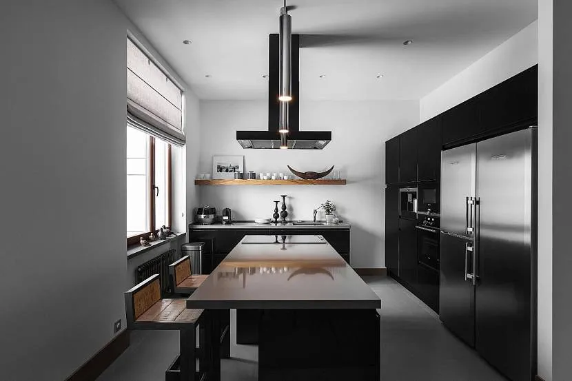 Доминирующий черный цвет на кухне с окномИсточник www.behance.net