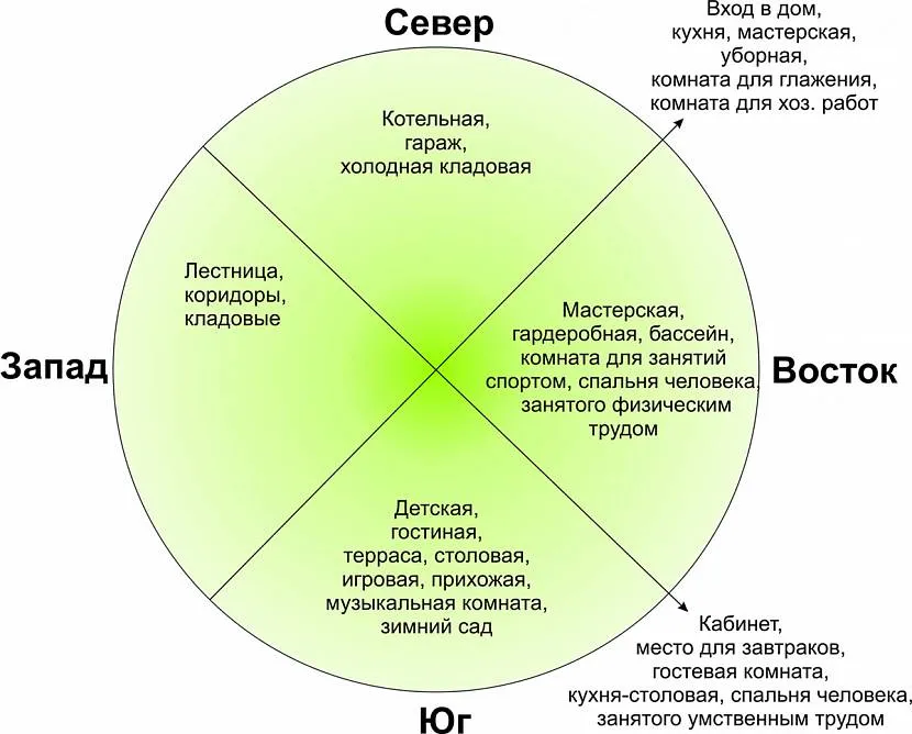 Расположение комнат дома и построек, в зависимости от сторон светаИсточник ex3msport.life