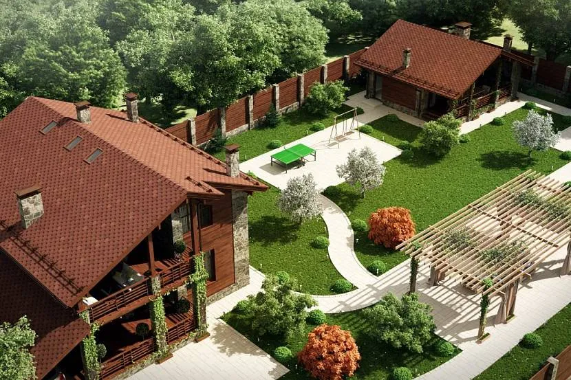 Участок с домом, хозпостройками, качелями и теннисным столомИсточник yurlkink.ru