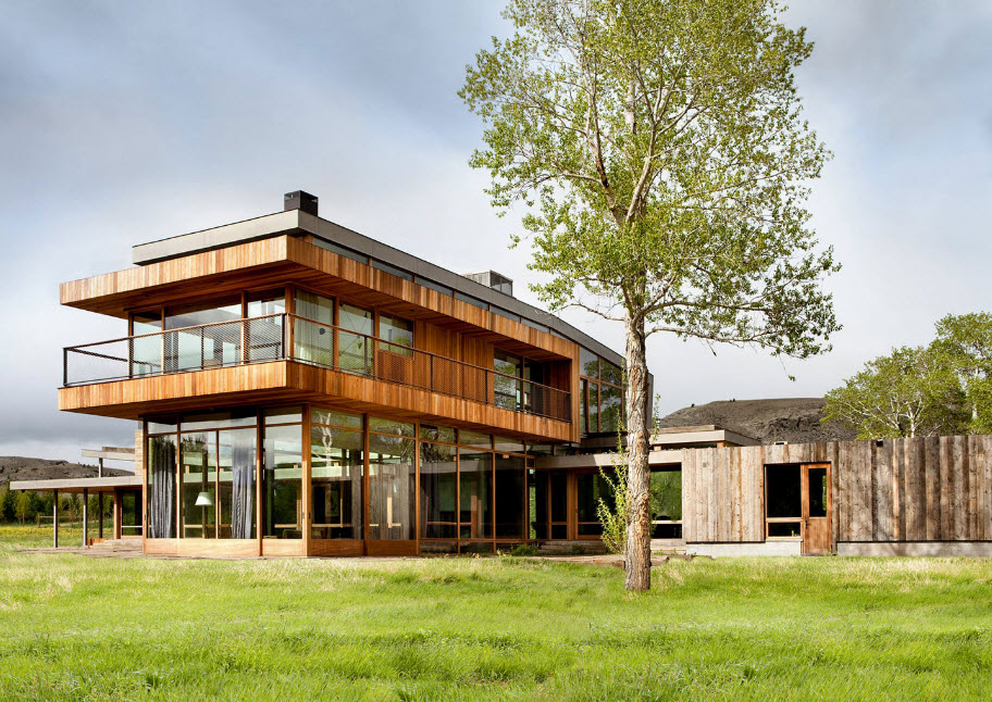 Старое заброшенное здание располагается на площади 2000 акров, представляло собой довольно сложную задачу для дизайнеров. Но результатом является нейтральный дом в стиле ранчо, контрастирующий со стильными черными окнами с естественными деревянными ставнями.
