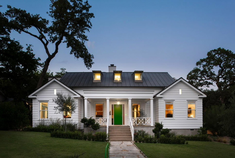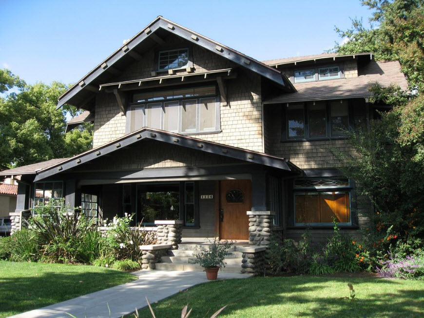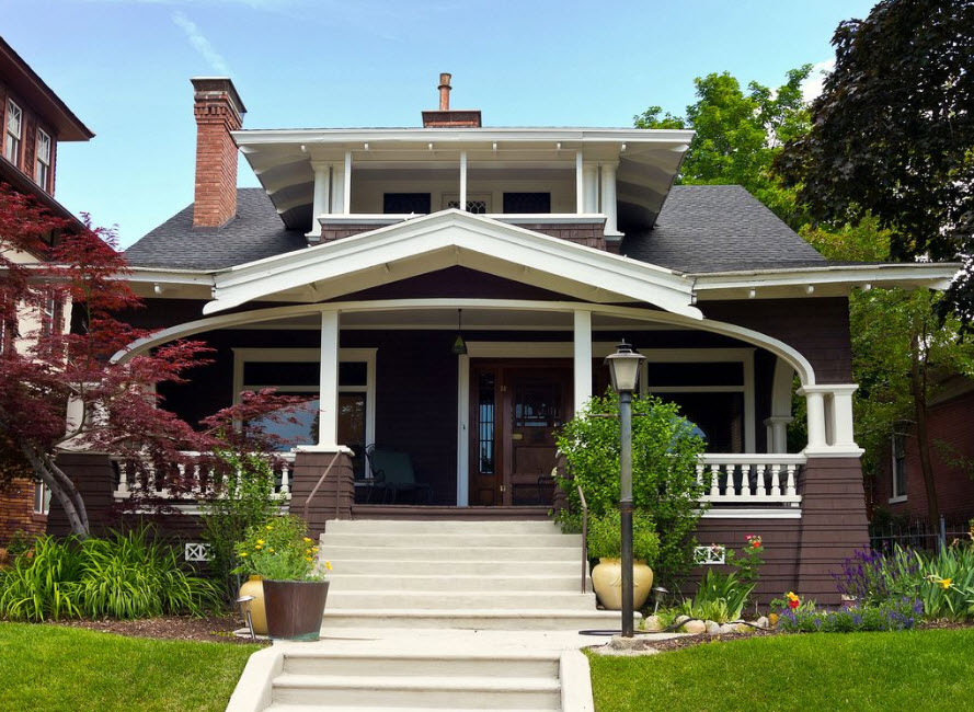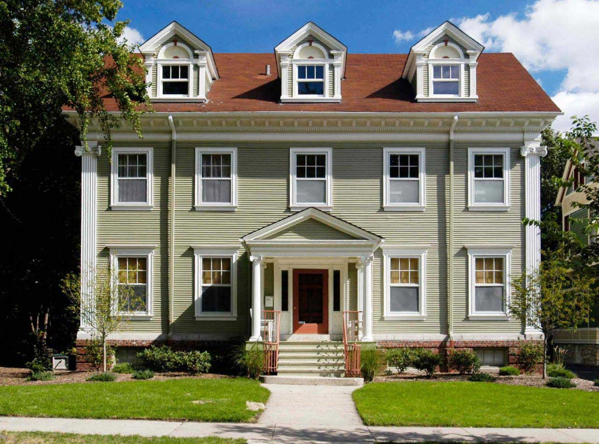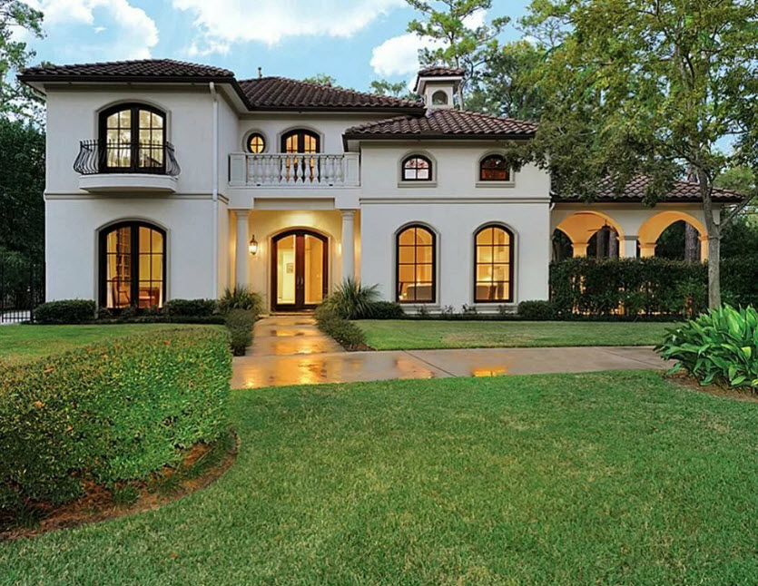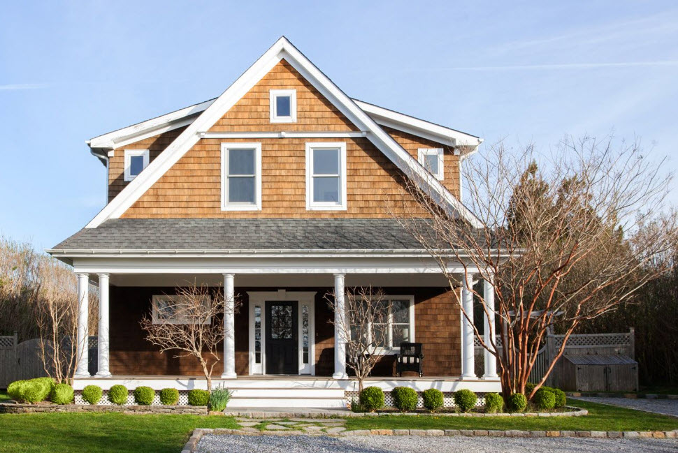 Дом в американском стиле проектируется с точки зрения функциональности и удобства. Американским домам свойственная симметричная форма, низкий фундамент, для оформления фасада дома почти не используют декор, а вход в дом предваряет просторная терраса. Чаще всего в домах в американском стиле отсутствует цокольный этаж, зато есть мансарда. Входов в дом делают несколько – парадный и один-два дополнительных. Окон в доме размещают довольно много. Испанский колониальный стиль оставил после себя арочную форму оконных конструкций, но она используется в домах не всегда.