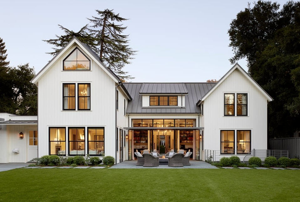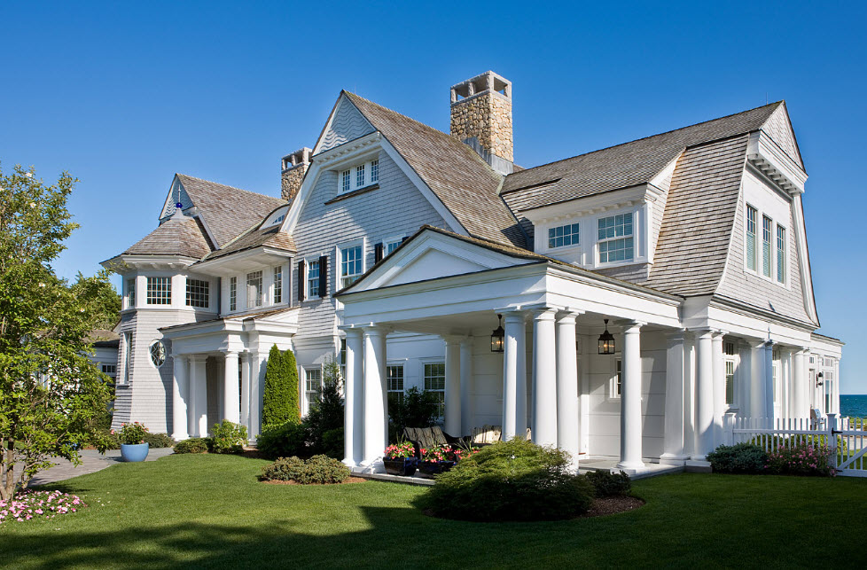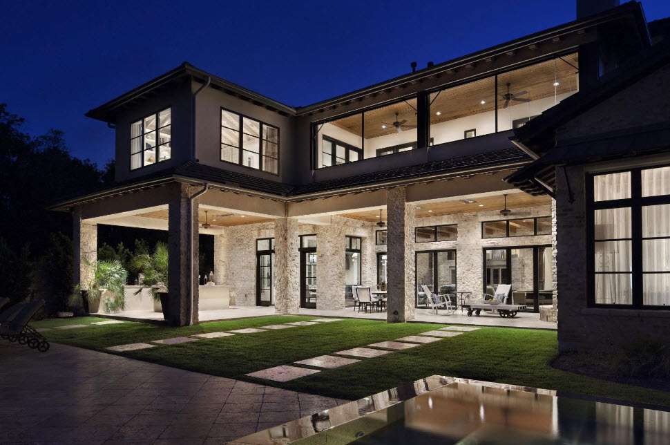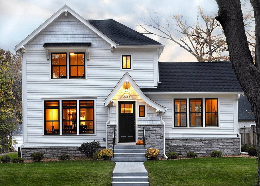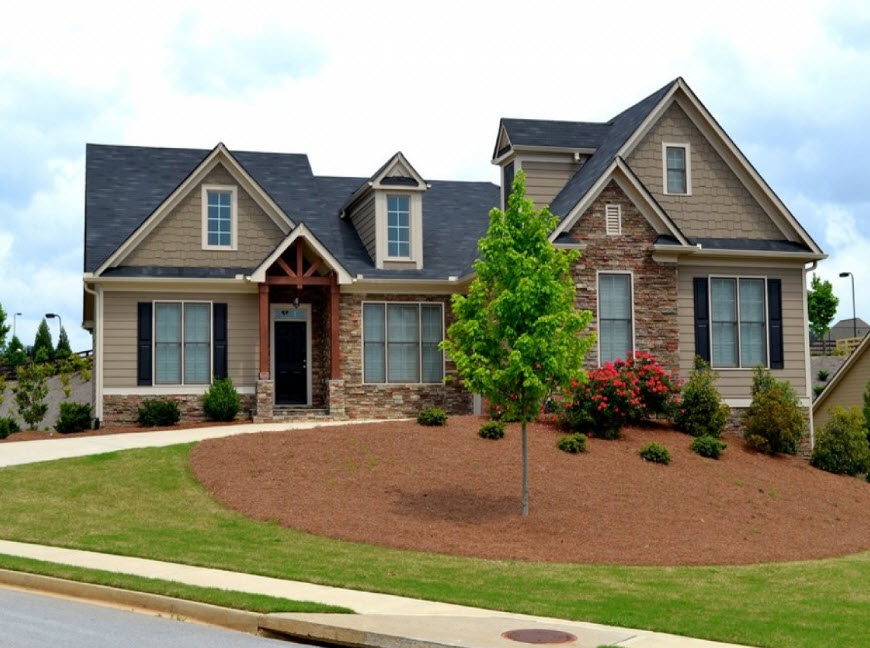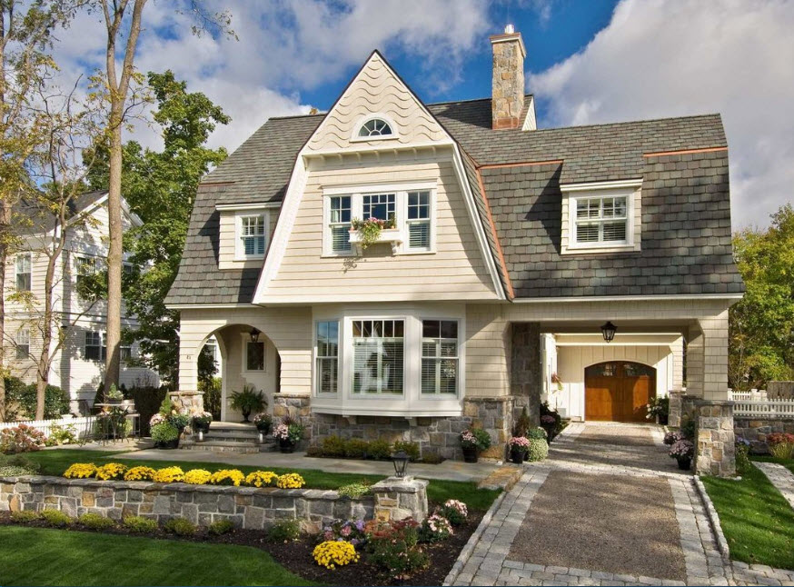 Дом в американском стиле проектируется с точки зрения функциональности и удобства. Американским домам свойственная симметричная форма, низкий фундамент, для оформления фасада дома почти не используют декор, а вход в дом предваряет просторная терраса. Чаще всего в домах в американском стиле отсутствует цокольный этаж, зато есть мансарда. Входов в дом делают несколько – парадный и один-два дополнительных. Окон в доме размещают довольно много. Испанский колониальный стиль оставил после себя арочную форму оконных конструкций, но она используется в домах не всегда.