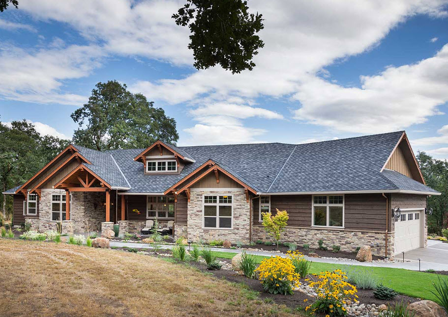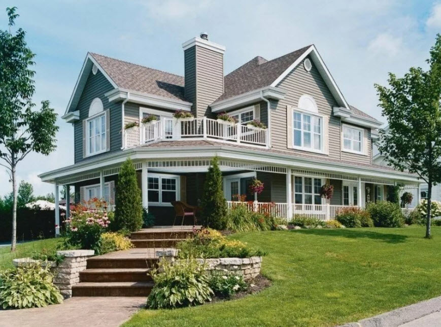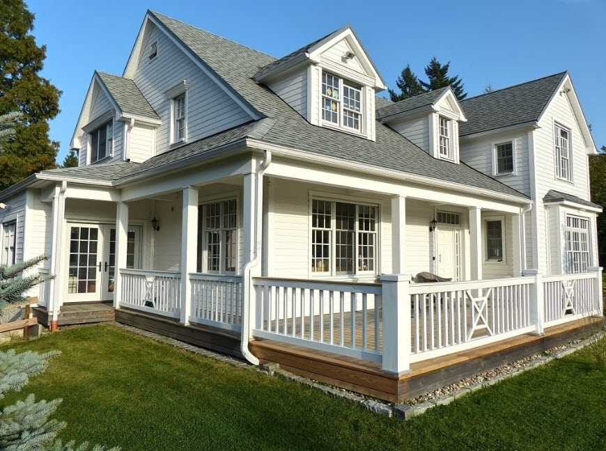 Фасад дома в Кантри стиле может быть организован в соответствии с различными направлениями деревенского стиля. Самыми популярными из них являются канадский и американский стиль.