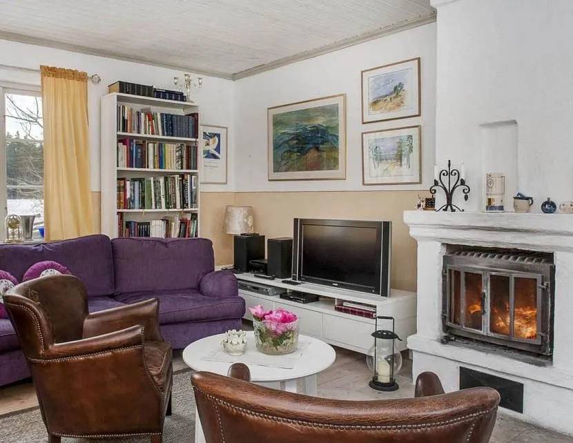- Гостиная. Меблировка располагается чаще всего по периметру, иной раз ближе к центру, но никогда не устанавливается в упор к стенам. Если хочется показать простор, то предметы мебели должны быть подальше от стен. В стремлении к уюту выбирается мебель с мягкой обивкой, а также устанавливается камин. Всего рода современная техника тоже устанавливается именно здесь. Большой плазменный экран, как вариант;