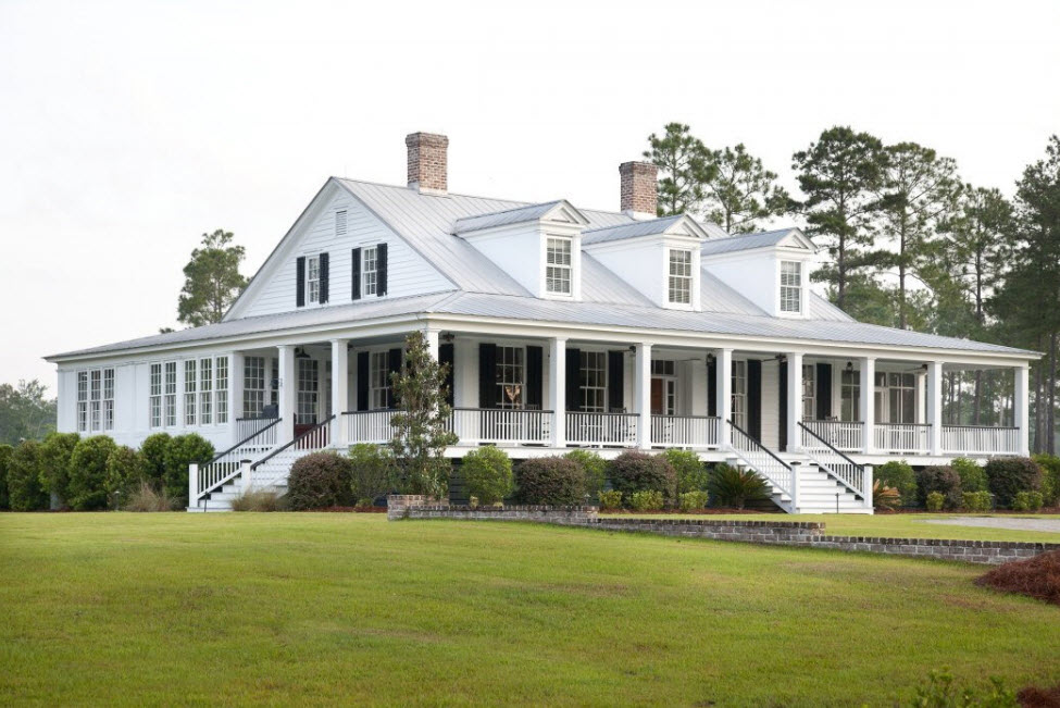 Терраса и веранда. Широкая круговая терраса на первом этаже является американской классикой; на нее иногда делают выход из хозяйской спальни. Практичные владельцы размещают здесь удобную мебель для отдыха, вешают гамак, устраивают игровую зону для детей. Здесь можно поставить мангал или устроить летнюю кухню. Веранду также стараются сделать просторной, ее украшают плетеной мебелью и собираются там за утренним кофе или вечерней беседой.