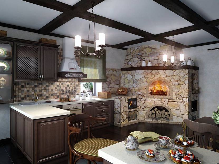 Дизайн-проект современной кухни-гостиной с печью Источник svoimy-rukami.ru