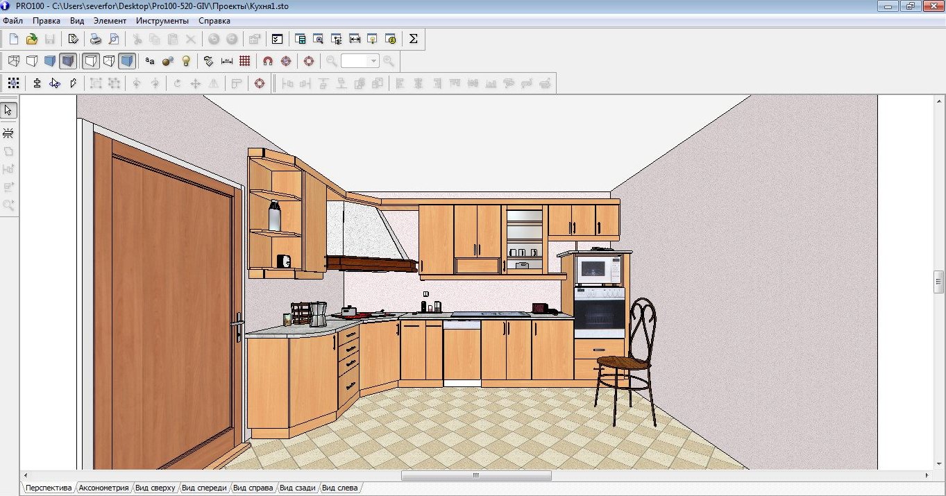 Программа «PRO 100» позволяет виртуально расположить мебель в помещении, справляется с конфигурациями деталей любой сложности. Имеет широкий диапазон функций: