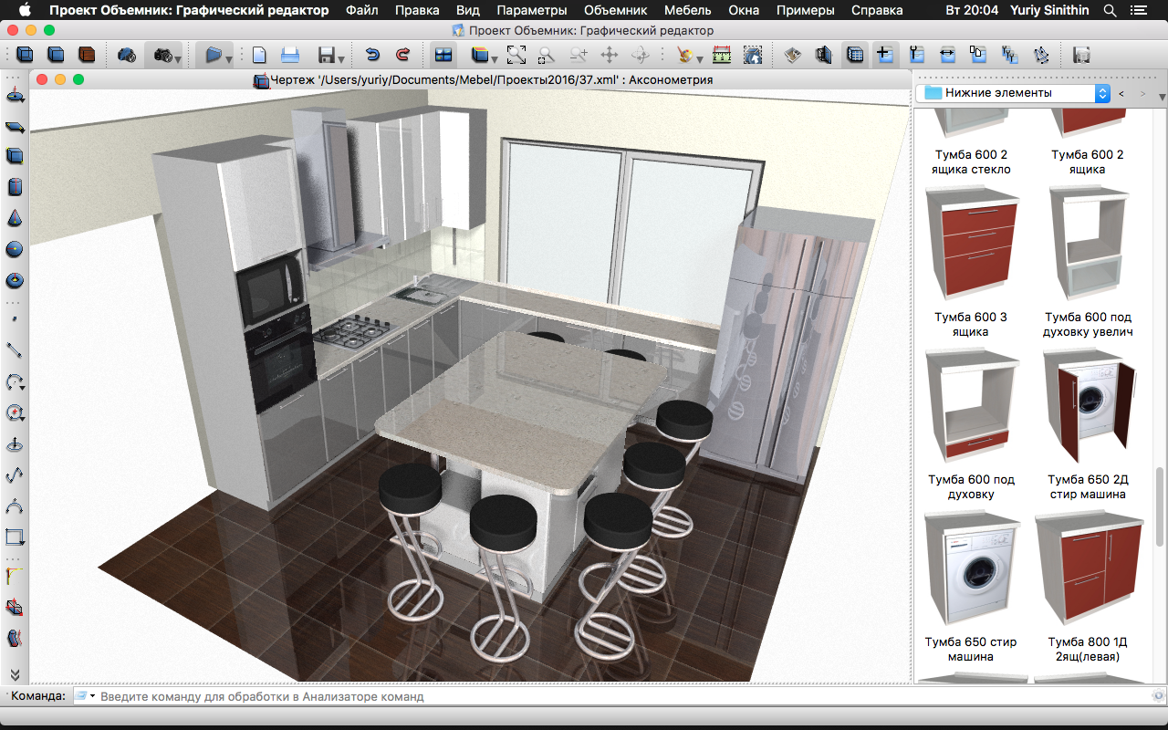 Программа содержит большое количество проектов различных изделий. Обилие образцов дает широкий простор для выбора и позволяет создать на их основе свою неповторимую модель. «Объемник–мебельное предприятие» работает на Windows, Linux, MacOS.