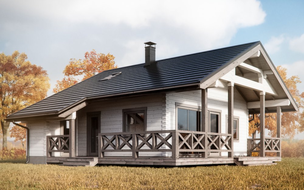 Одноэтажный каркасный дом с террасой уместен в следующих ситуациях: