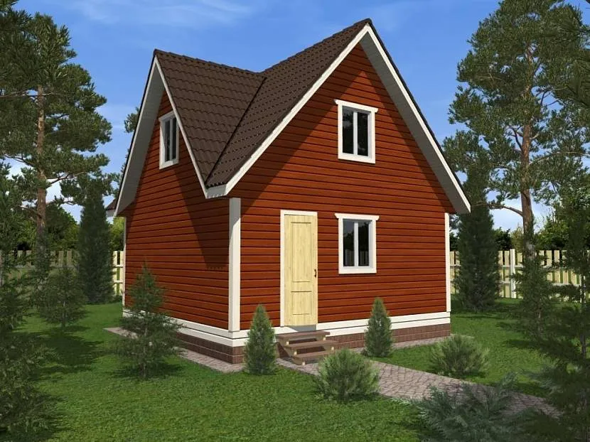 - Немного меньших размеров жильё 7х9 с мансардой или квадратный дом из бруса 8х8 с мансардой;