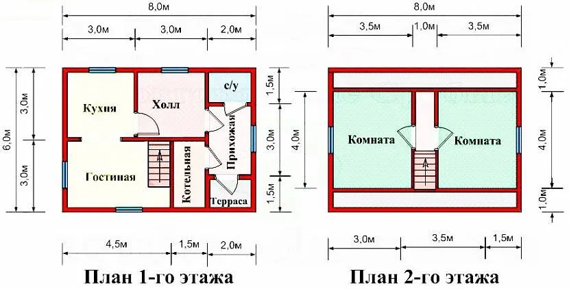 Проект и планировка дома из бруса размером 6 на 8 метров