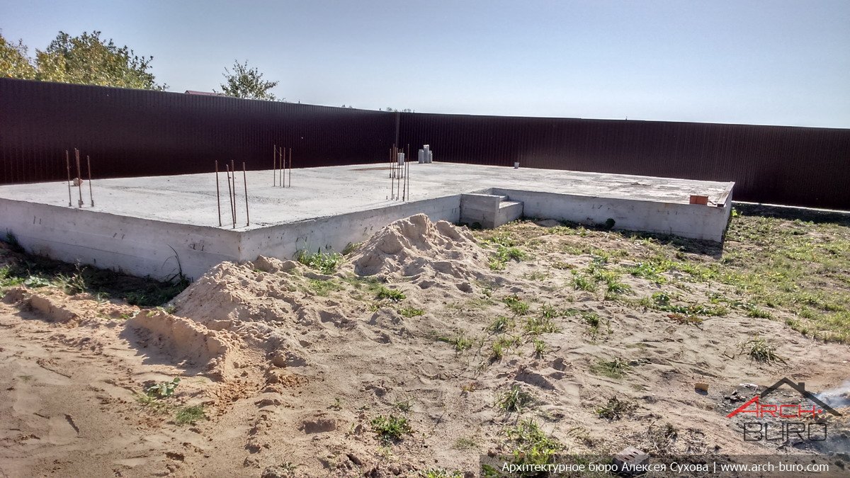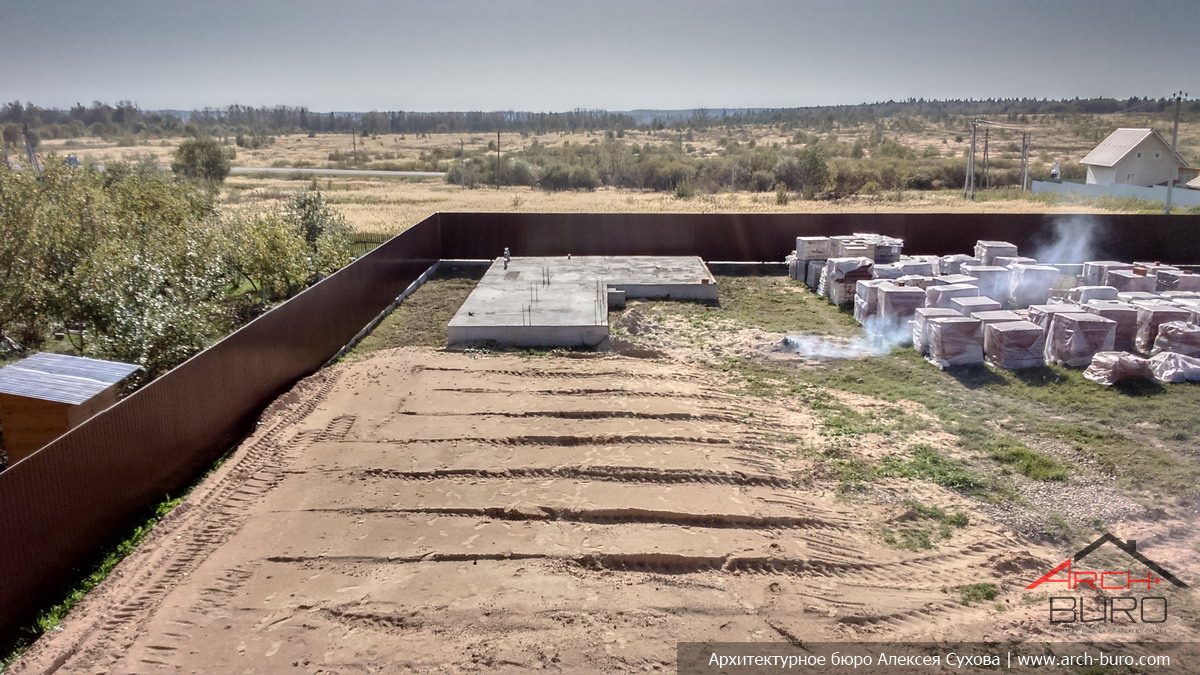 К моменту обращения клиента у него на участке уже были возведены фундаменты всех планируемых сооружений, – дома, гаража и гостевого домика. Первые два были спроектированы в другом агентстве, а вот гостевой дом клиент решил заказать именно у нас.