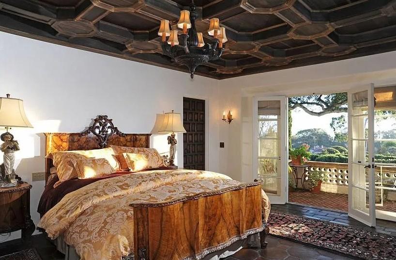Камин добавит уюта и без того теплой и красивой спальне в испанском стиле