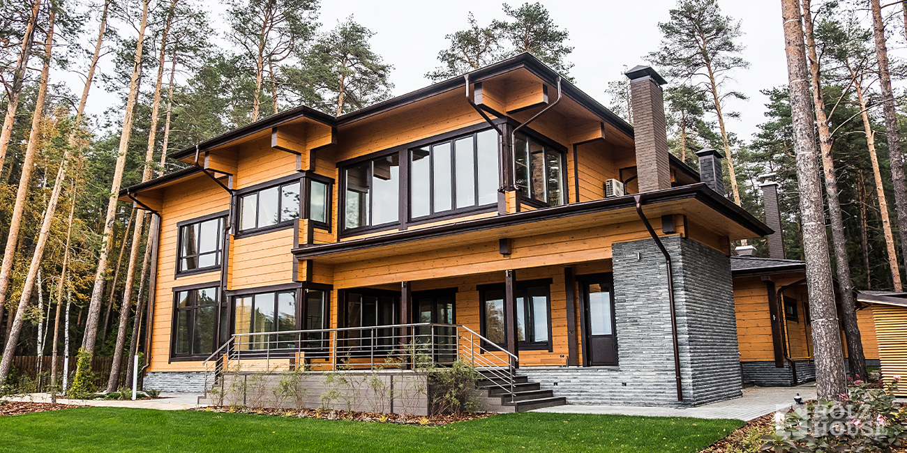 Дом с отделкой фасадов под деревоИсточник remcraft.ru