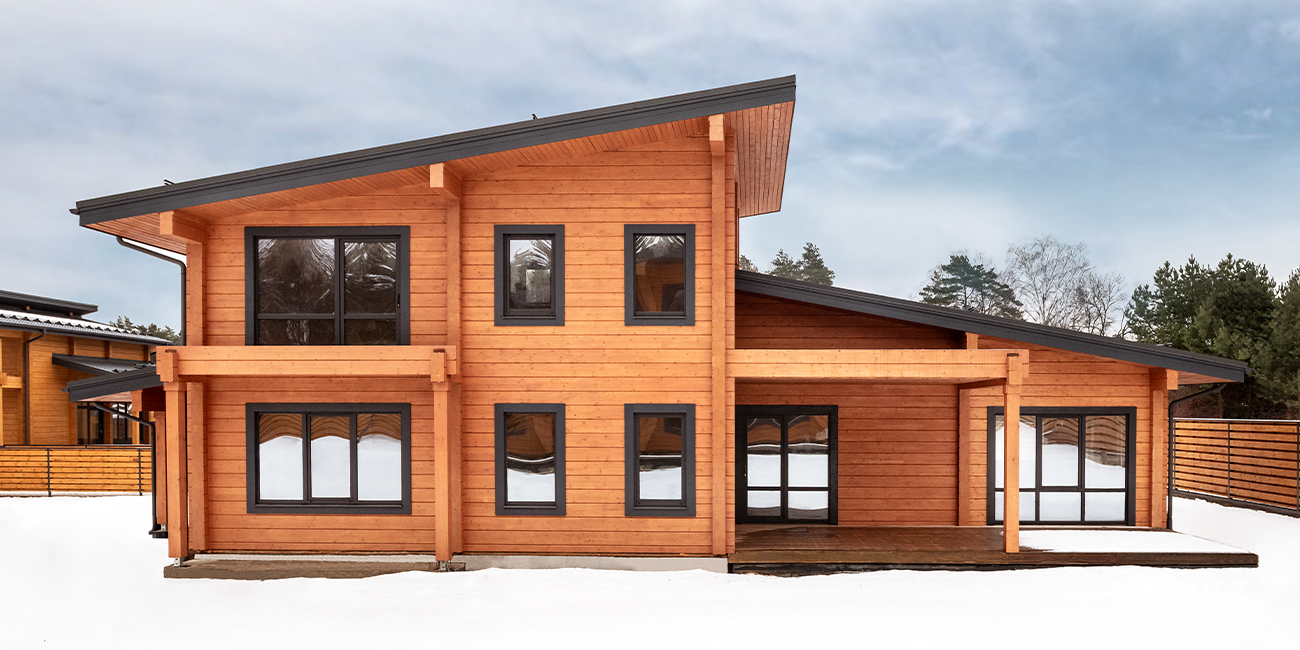 Фасад дома северного модерна в употреблении декоративных элементов графичный и сдержанный. Их основная примета — это отделка фасадов с сочетанием искусственных и естественных материалов отделки.