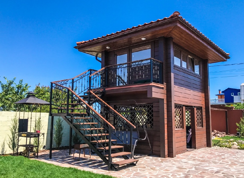 - Круглогодичное использование. Верхний этаж выступает в роли открытой террасы, на нижнем удобно отдыхать в непогоду.