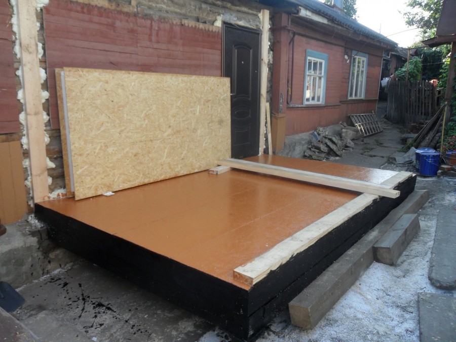 Конструкция из этого материала тяжелее, чем каркасная, поэтому фундамент должен выдерживать большую нагрузку. В качестве гидроизоляции используют рубероид. Чтобы стены стояли прочно, их закрепляют на нагелях, сделанных из дерева или металла. Составляя технический план пристройки, нужно учесть, что оба материала меняют объемы из-за жары и холода. Также на конструкцию будет влиять влажность.