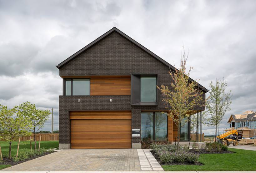 В оформлении дома используются контрасты, например, при светлой отделке используются темные стеклопакеты или декоративные балки.