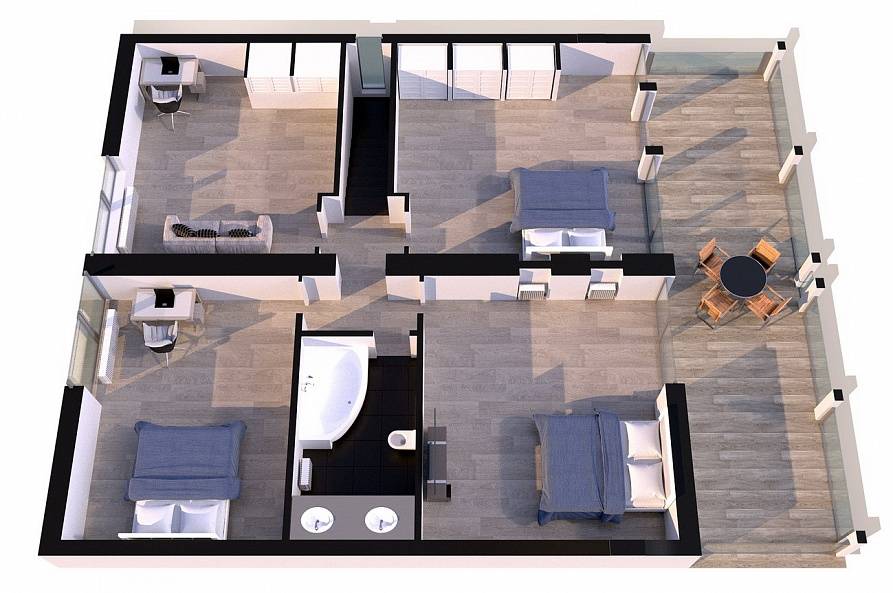 - Большие панорамные окна, потому что в доме должно быть много естественного света.