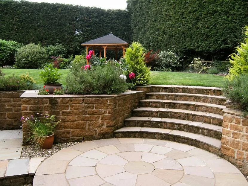 - Если на территории предусматривается даже незначительный холм, то в любом случае без лестницы обойтись нельзя.