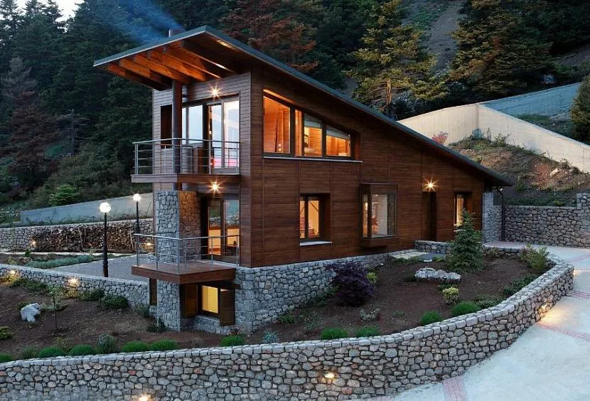 решение позволит разместить уютное и просторное жилище на самом сложном рельефе, на нарушая природную гармонию. Каменные выступы