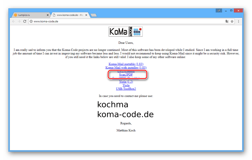 - Откройте страницу по представленной нами ссылке и выберите из списка пункт «Scan2PDF». Программу необходимо загрузить на компьютер и установить.