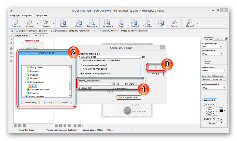 Для сборки pdf-документа из отсканированного материала кликните «В PDF», укажите каталог для хранения файла, введите его название и жмите «Сохранить».